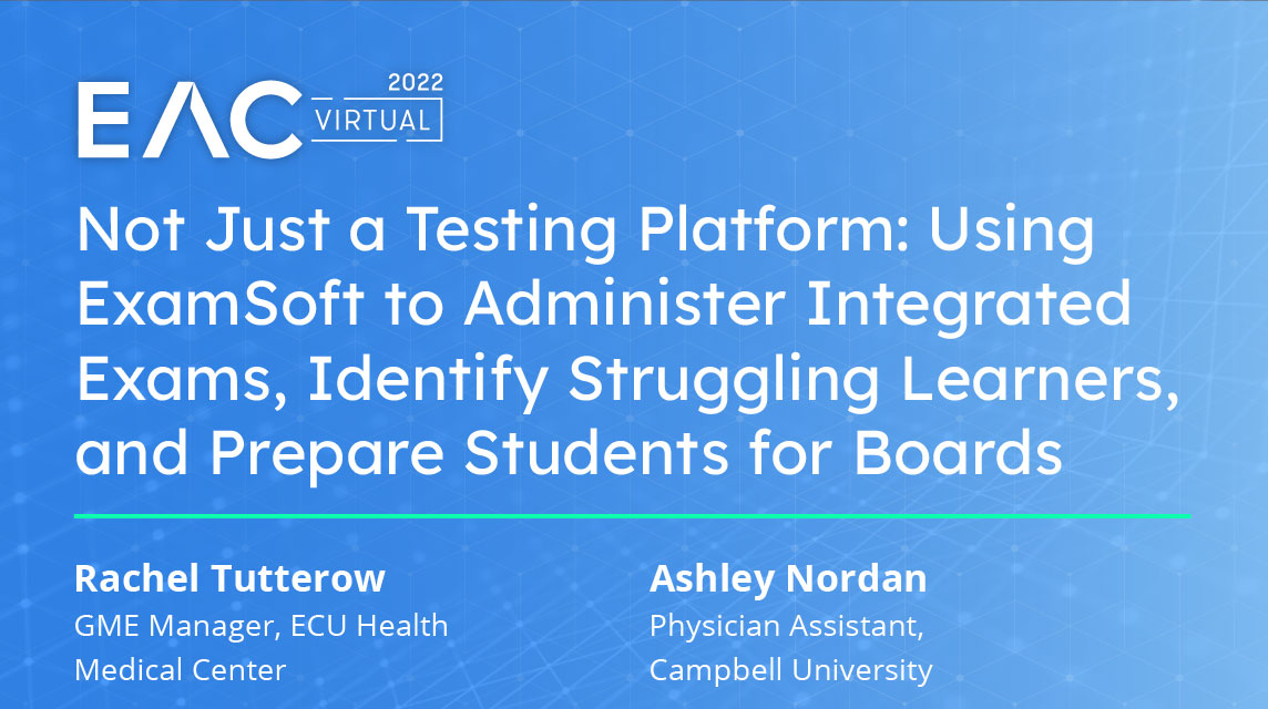 Integrated exams assess comprehensive student knowledge and understanding at a high level like that of a board certification exam. The utilization of ExamSoft’s category feature makes this possible for our program. ExamSoft’s capabilities combined with a robust process for faculty review, a strong concern for exam security and integrity, and involvement from our whole team, enable us to consistently administer integrated exams.